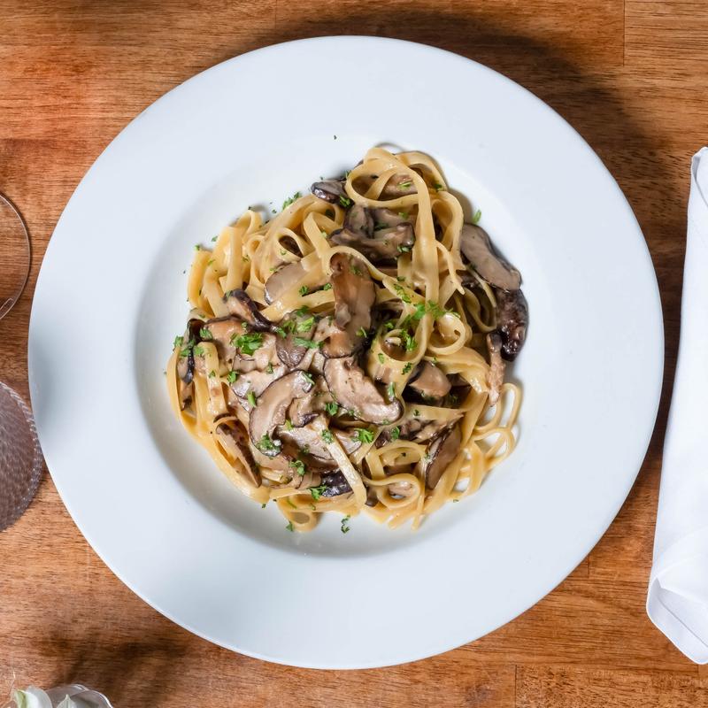 Egg noodles with wild mushroom and brown sauce
