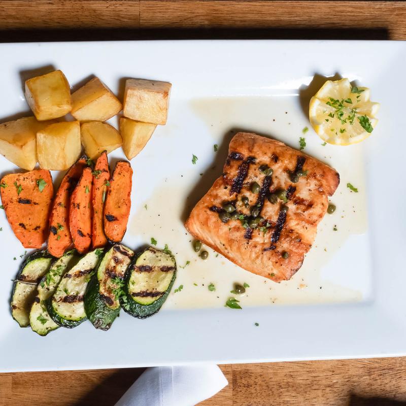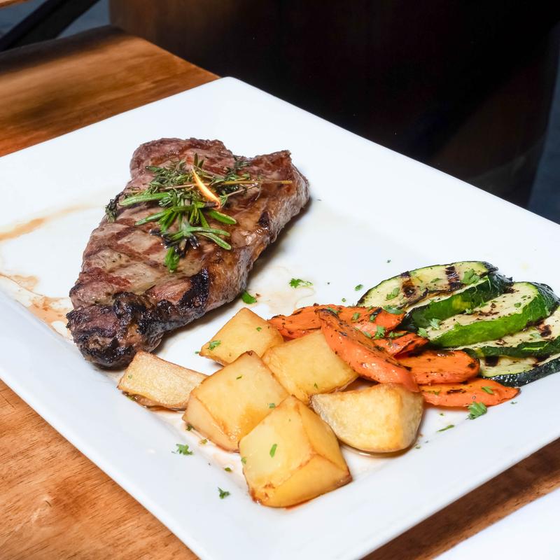New York steak grilled prepared to your preference, sliced and top with Salmoriglio sauce